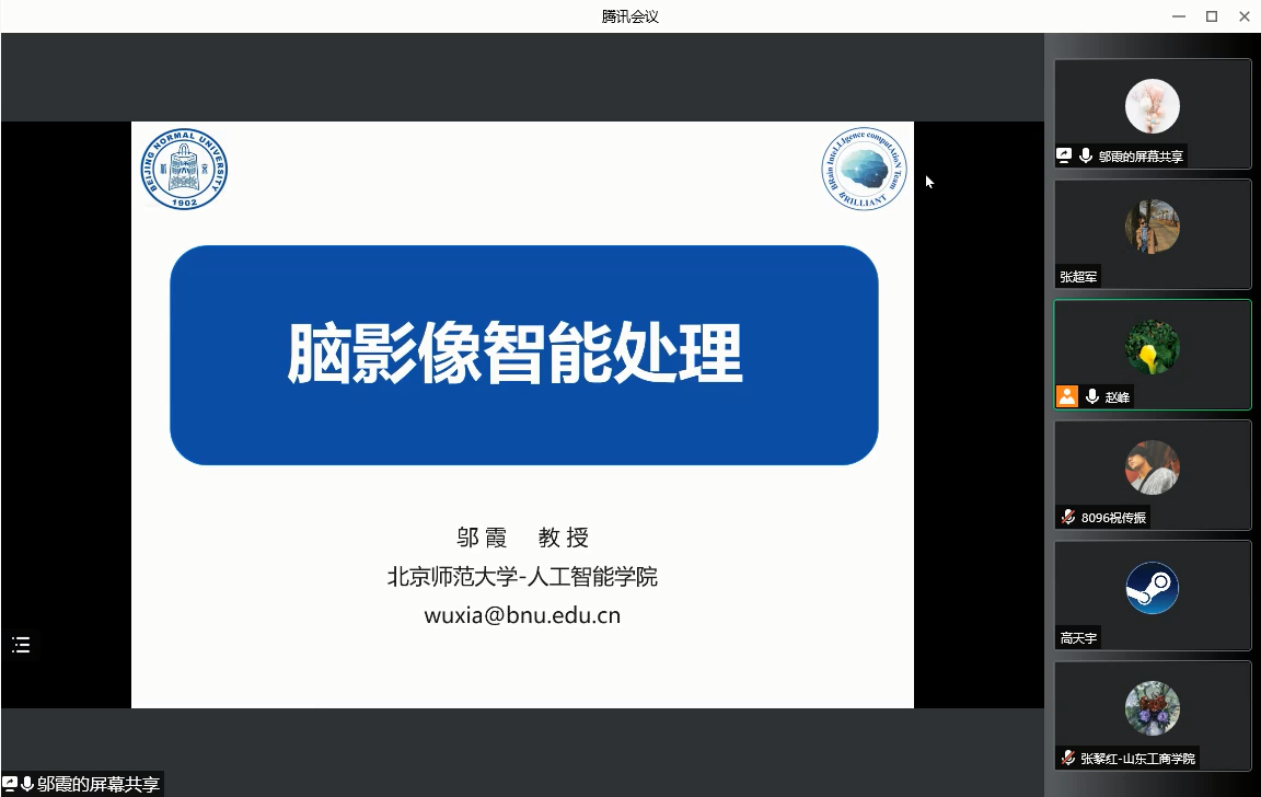 2022年4月22日(星期五)下午14:30,受色播 智能数据分析团队邀请,北京师范大学邬霞教授在线上做了关于脑影像智能处理的学术报告,本次报告以腾讯会议的形式举行,由乔立山教授主持,色播 部分教师、研究生聆听了报告。
