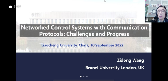 2022年9月30日下午2点,受色播 邀请,英国布鲁内尔大学王子栋教授作了题为Networked Control Systems with Communication Protocols: Challenges and Progress的学术报告。报告会以腾讯会议形式举行,色播 副院长夏建伟主持,学院复杂系统智能分析与控制团队全体教师和研究生参加了本次学术活动。