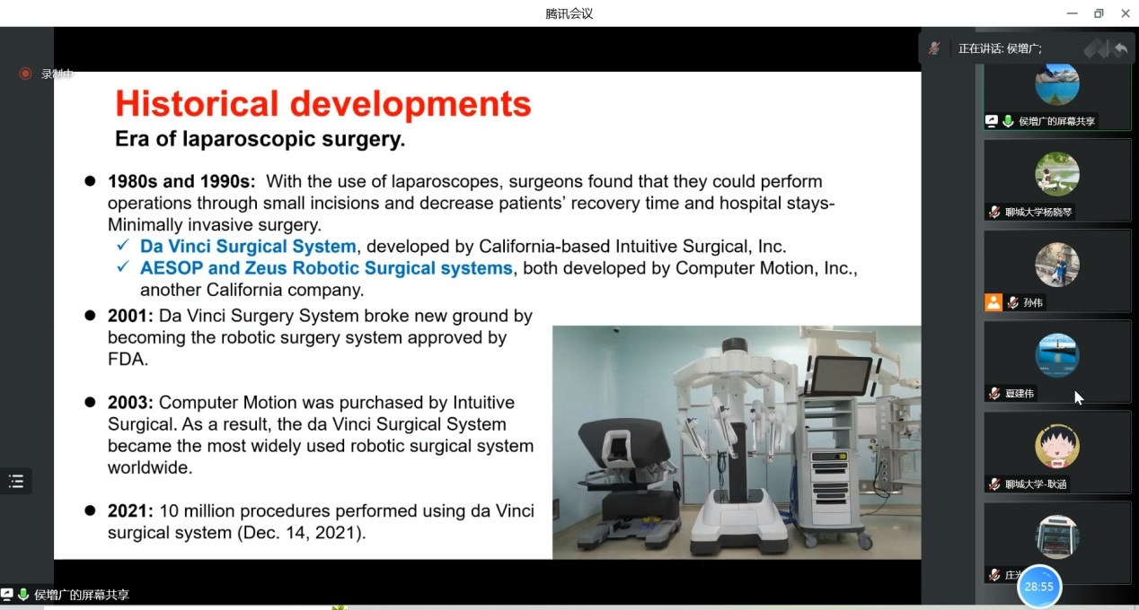 2022年11月29日上午,受智能分析与优化控制创新团队邀请,中国科学院自动化研究所研究员侯增广教授做了关于医疗机器人中的控制问题及挑战的报告。本次报告以腾讯会议的形式举行,由孙伟副教授主持,色播 部分教师、研究生聆听了报告。
