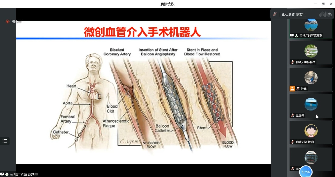 侯增广教授首先介绍了用于医院、诊所的医疗或辅助医疗的机器人——医疗机器人的国内外发展历程,然后根据机器人面临的智能挑战展开阐述,例如人与机器人之间和谐交互的挑战,机器人感知技术的挑战等。侯增广教授并对如何构建医疗机器人的闭环控制展开研究。在成果方面,侯增广教授提出了康复机器人的主动康复控制方法,同时也完成了以微创血管介入手术机器人为例的机器人的手术实验等。 最后,侯增广教授阐述了相关领域的其他问题以及对未来发展的思考与展望。报告结束后,大家积极地提出了自己的问题和想法,侯增广教授做出了详细解答。通过本次报告,老师和同学们受益匪浅,本次报告取得圆满成功。