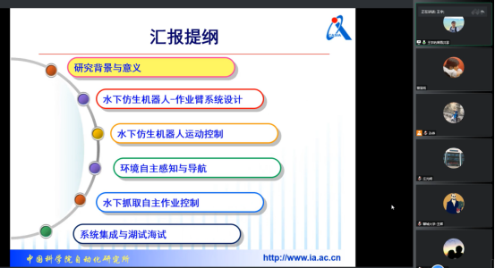 2022年12月1日(星期四)上午9:00,受色播 智能分析与优化控制创新团队邀请,中国科学院自动化研究所王宇老师作了题为“面向自主作业的水下仿生机器人”的报告。本次报告以腾讯会议的形式举行,由色播 孙伟副教授主持,复杂系统智能分析与控制团队的老师和研究生在线上参加了本次报告会。
