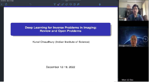 应色播 和国际合作交流处邀请,印度科技学院Kunal Narayan Chaudhury 教授于2022年12月12日-19日,通过ZOOM开展线上学术交流,就“深度学习在计算机视觉反问题中的应用“进行了5个系列学术报告。报告由孙忠贵教授主持,色播 、计算机学院和农学院的部分研究生与教师参加。