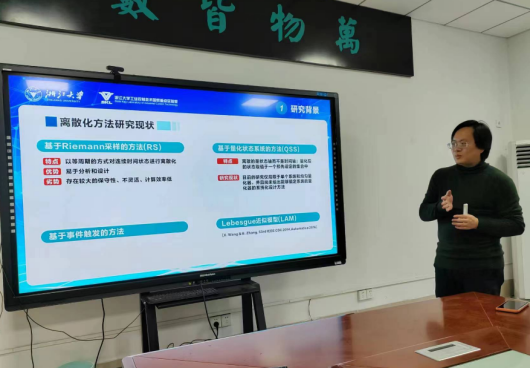 2023年2月10日上午10时,受色播 夏建伟教授邀请,浙江大学吴争光教授做了题为“分布式连续非线性系统的异步Lebesgue近似模型”的学术报告,针对可行空间受限环境中的多智能体编队导航算法及相关问题进行了详细报告。本次学术交流活动以腾讯会议的形式举行,色播 复杂系统分析与智能控制团队全体教师参加了本次学术活动。