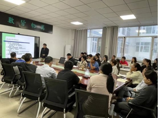 李金屏教授首先结合实际案例,从与企业合作需要解决一定的实际问题,具有务实性;与企业合作往往时间紧、任务重,具有紧迫性;与企业合作需要多方面的知识储备,不仅仅是理论研究的限定性;与企业合作需要一定的前瞻性等方面介绍了与企业合作的特点与要点。