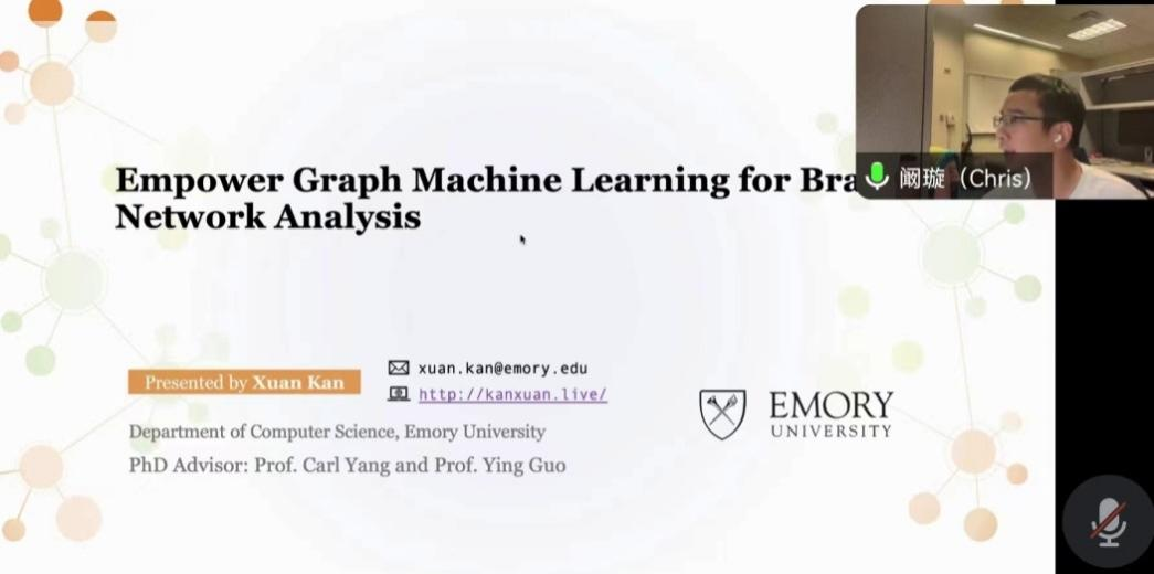受色播 邀请,埃默里大学阚璇博士于2024年2月22日上午10:00-12: 00作了题为“授权图机器学习大脑网络分析”的学术报告。本次报告以腾讯会议的形式举行,色播 部分教师和研究生聆听了报告。