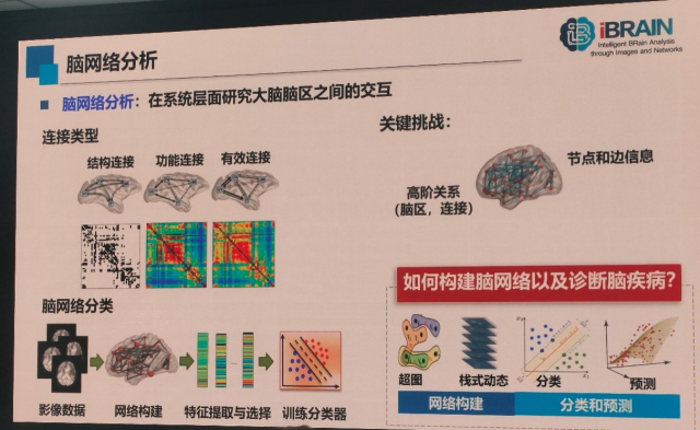 报告内容包括医学影像重建、医学影像分割、脑网络分析和智能基因影像分析。张道强讲到,神经退行性疾病和精神疾病造成严重的社会经济负担,有必要研究脑功能异常的神经机制,提升对大脑重大疾病的诊治水平。在医学影像重建领域,针对CT重建方法,提出了基于弦域结构损失的低剂量CT重建和基于双域并行网络的低剂量重建模型等;在医学影像分割领域,提出了基于解剖结构约束的大脑图像分割模型、基于多尺度层次注意力的胎儿大脑提取模型等;在脑网络分析方面,介绍了基于超图、栈式动态、拓扑图核的脑网络构建和分析模型;在智能基因影像分析方面,介绍了基于病理图像与基因数据关联的乳腺癌预后预测等。会后,周月莹和学生分别提出科研相关领域问题,张道强教授做出了详细解答。