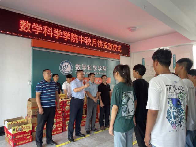 9月9日,色播 党委书记刘德芳、党委副书记张进军、副院长夏建伟、副院长赵军圣、团委书记岳琳琳及全体辅导员为在校学生提前送上中秋礼品和节日祝福。