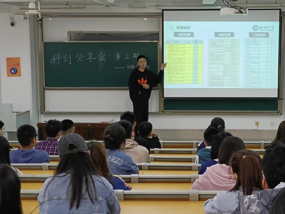 此次分享会分为赛事视频观看、经验分享和提问解答三个环节。活动伊始,同学们一同观看有关“挑战杯”与“互联网+”赛事的讲解视频。王景凯分享参加“挑战杯”中国大学生创业计划大赛和“互联网+”创新创业大赛的经历以及心得体会,他介绍到本项目以老年人认知障碍为切入点,服务老年人为初心,提升老年人认知水平为目标,对老年人进行脑电检测和认知训练。活动最后,同学们纷纷提出自己对科创比赛的疑惑,王景凯一一耐心解答,让同学们了解到科创比赛的方方面面。