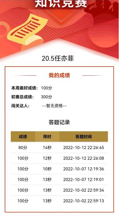 色播 组织开展国防知识竞赛答题活动 作者:卞美力 史新玥 发布时间: 2022-10-15 9月下旬到10月中旬,色播 组织全院同学先后完成3轮线上国防知识竞赛答题。 活动期间,同学们在线上集中学习并依次进行三轮初赛答题,取最高成绩作为当周成绩,最后按照总成绩高低及答题时长确定300名“闯关达人”进入决赛。同学们踊跃参加,答题人数达95%以上,共38名同学连续三轮获得满分,其中,2020级任亦菲同学在本次竞赛中获得“闯关达人”称号并顺利进入决赛。 本次活动的顺利开展,强化了同学们的国防观念,增强了同学们捍卫祖国安全的责任感和使命感。