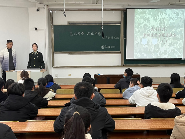 于11号楼A104举办“热血青春,志在军营”征兵讲座活动,2022级部分同学参加。
