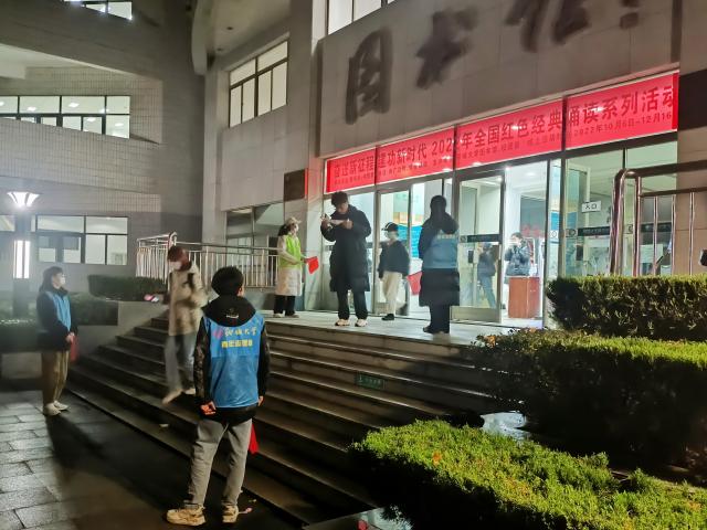 学院在接到志愿服务任务后,迅速组建团队,第一时间集结并投身到疫情防控工作中,科学设置岗位、合理安排服务时长,以确保每一时段均有志愿者在岗,最大限度保障师生的安全与健康。志愿者们身穿蓝色、绿色马甲,在做好个人防护前提下,分别在学校主干道、食堂、图书馆、浴室等人员密集区域向未戴口罩的同学们发放免费口罩,提醒同学们科学规范佩戴口罩,同时劝导同学们不扎堆、不聚集,保持安全社交距离,时刻注意个人防护。志愿者们在校园内认真巡查,以实际行动引领同学们认真落实疫情防控要求。