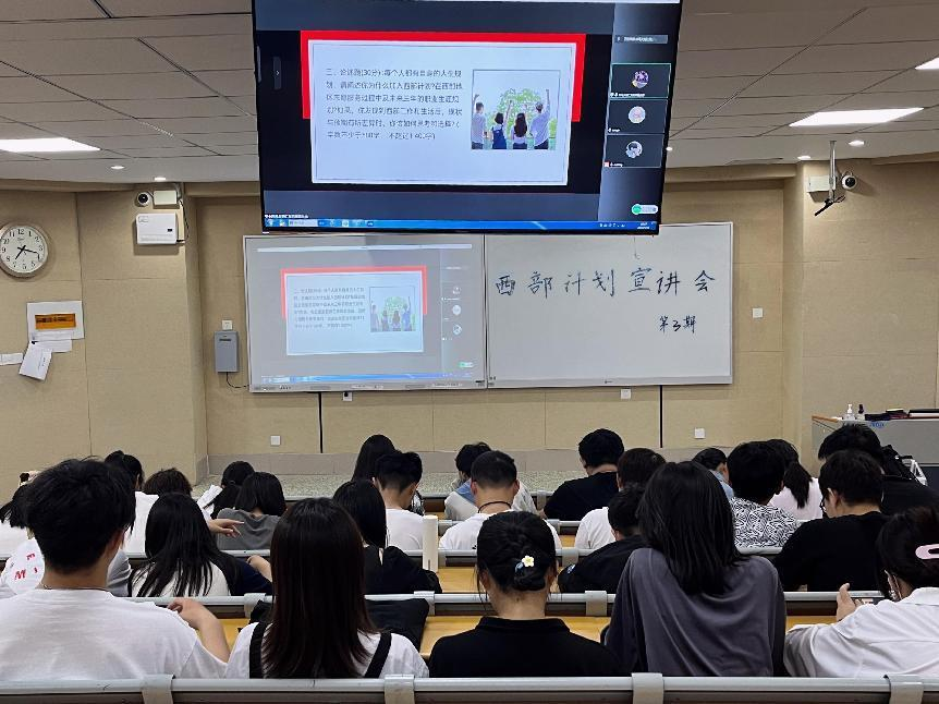 5月12日,色播 于11号教学楼C304举办西部计划宣讲会第三期,我院2021届西部计划志愿者刘仁义任此次宣讲人,2019级和2022级部分同学参加。