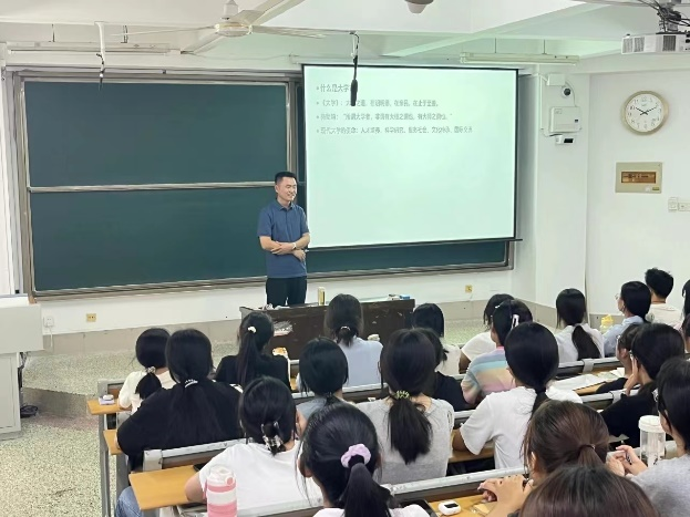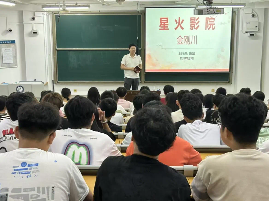 学院始终坚持以习近平新时代中国特色社会主义思想为指导,将思想育人作为“三全育人”体系的重要内容统筹推进。一是用党的理论引领新生。9月2日,学院党委副书记以“中国共产党人的精神谱系简介”“大学生与大学精神”为主题,为全体新生同上一堂思政大课,补足“精神之钙”;二是用家国情怀激励新生。学院利用9月3日开展的“国旗下话成长”主题升旗仪式、9月5日开展的星火影院《金刚川》主题观影活动等,强化了新生的社会主义核心价值观,增强了责任感、使命感。