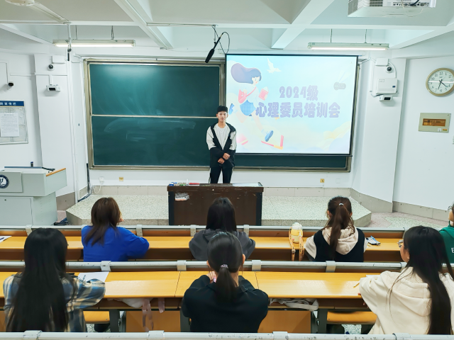 为提升心理委员专业素养,更好服务同学身心发展,10月17日,色播 于11号教学楼A204组织开展2024级心理委员培训会,本次培训会由心理健康与教育协会理事长王梦娴主持,2024级全体心理委员参加。