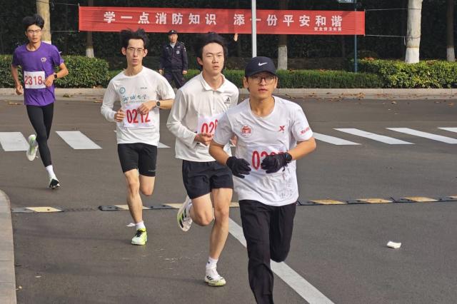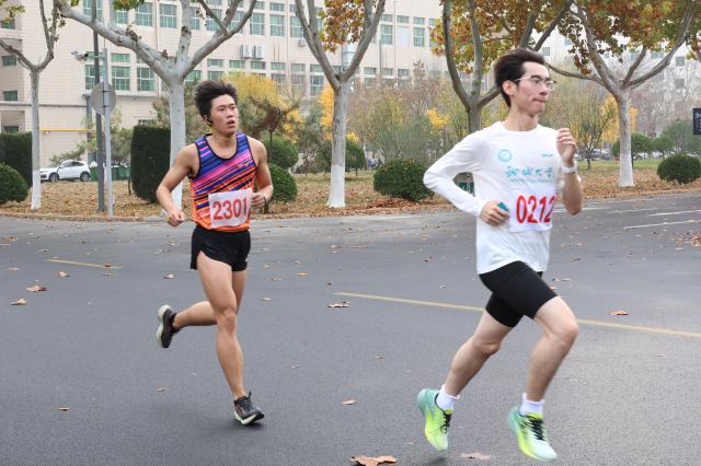本次越野赛分为男子和女子两个组别,男子组比赛路线全长10公里,女子组比赛路线全长5公里,以西校区南田径场西跑道为起点,东跑道为终点,赛道沿线精心设置了多个服务点。随着开跑声划破寒冷的空气,选手们奋勇向前,朝着远方的目标飞奔而去,比赛中,选手呼出的热气在冷气中消散,手臂不停摆动,汗水从脸颊滑落,有的选手步伐轻盈,在人群中崭露头角,彰显出超强的耐力和速度;有的选手虽气喘吁吁,却毫不退缩,咬紧牙关坚持奔跑。临近终点,选手们摆臂、加速、超越,向着胜利发起冲刺,每一位选手都在赛场上挥洒汗水,书写着属于自己的辉煌。