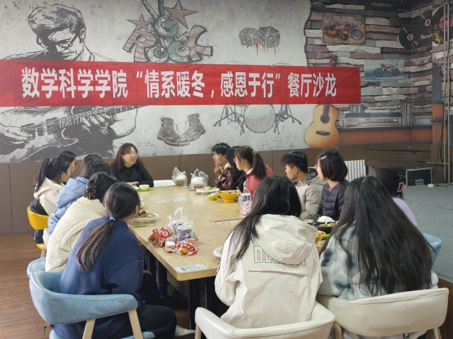 为提升资助育人工作实效,助力学生健康成长,11月23日,色播 于西校区雅苑餐厅二楼举办“情系暖冬,感恩于行”餐厅沙龙活动。学院资助辅导员张琦老师和部分家庭经济困难学生参加本次活动。
