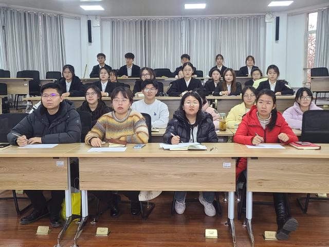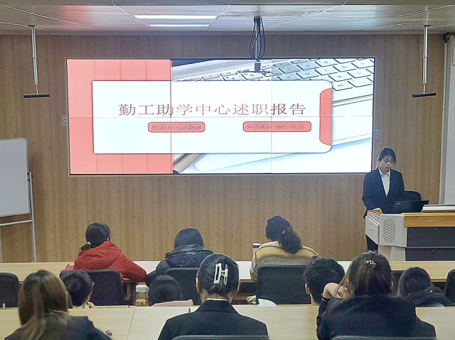 12月19日,色播 于11号教学楼A310教室举行2025届学生会部门负责人中期述职答辩会,团委书记岳琳琳,辅导员范海燕、王启尧、张琦及主席团成员担任评委,学生会各部门负责人进行述职。