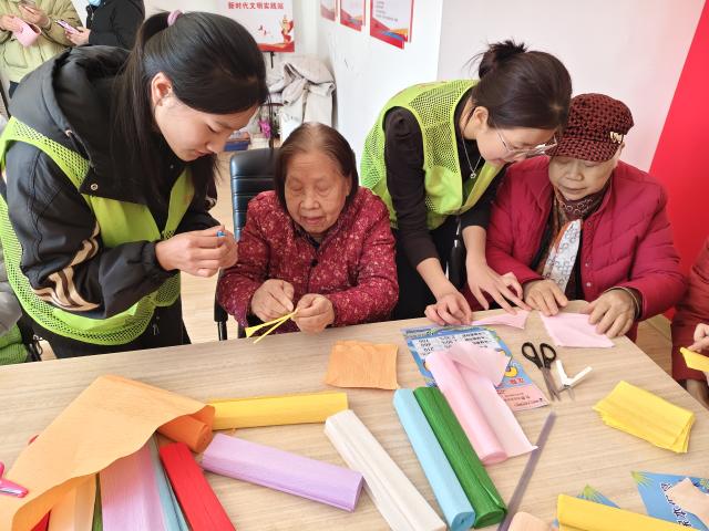 3月6日,色播 于聊城市东昌府区八一社区开展“锋行三月,情暖人间”社区志愿服务活动,旨在通过手工活动丰富退休职工的生活,缓解他们退休后的心理落差感和孤独感。本次活动由张雨桐同学主持,2023级和2024级部分同学参加。