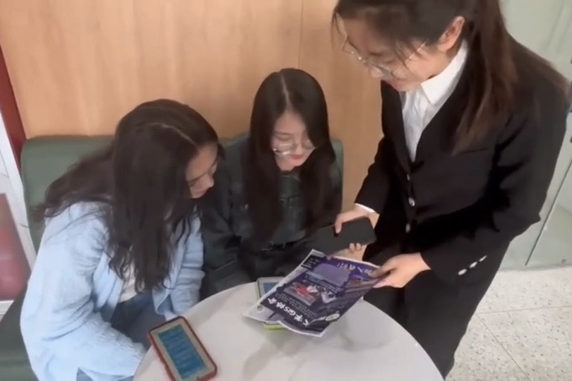 剧目《穿梭古今,筑反诈防线》由2024级5班周瑞琪、郭莎、郭晓悦、刘欣萓、崔思媛、李燕出演。剧中,社区广场氛围表面祥和,实则暗藏危机。“投资导师”骗子甲以虚拟币投资高额回报为诱饵,迷惑大学生小帅;骗子乙冒充客服欲进一步行骗。关键时刻,社区志愿者赵大妈敏锐察觉,果断制止,巡逻民警小王迅速介入揭穿骗局,并开展防诈知识普及。剧目生动还原诈骗手段,以“不轻信、不透露、不转账”为核心传递反诈要点,既展现了社区居民互助共治的温暖,也彰显了警民携手筑牢防诈防线的实效。