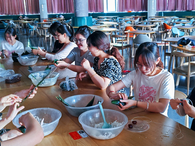 为传承和弘扬中华优秀传统文化,使学生进一步了解端午节的文化底蕴,感受浓厚的节日氛围,5月29日,色播 于湖苑餐厅二楼开展“粽叶飘香五月五,浓情端午共安康”包粽子活动。