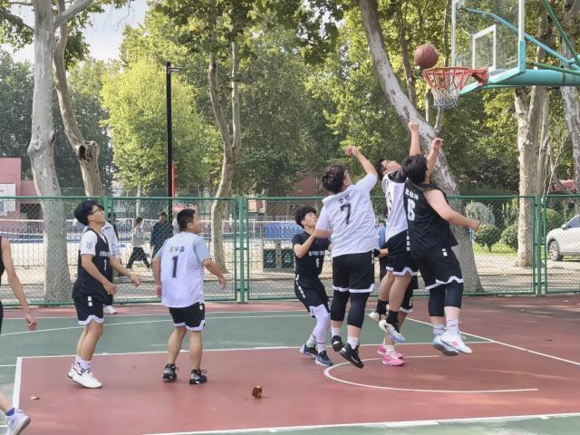 随着主裁判的哨声响起,篮球赛正式拉开帷幕,双方球员迅速进入状态,展开激烈角逐。比赛过程中,球员们热情高涨、配合默契、攻守兼备。控球后卫压低重心,以极快的速度在对方防守的缝隙间灵活穿插,不断寻找突破口;前锋球员则是展现出极强的机动性,或是借助队友的力量切入内线,亦或是在三分线外拉开空间,凭借弹跳力和爆发力,多次完成跳跃进球;中锋坐镇内线,在篮下积极强攻并争夺进攻篮板球,用扎实的卡位和策应,为队友创造进攻机会。从新生队伍之间的较量,到老生队伍之间的对决,再到新生与老生队伍的精彩碰撞,每一场比赛都高潮迭起。与此同时,场边观众的欢呼与呐喊声此起彼伏,每个人的目光都紧锁在球场上,现场氛围激烈而紧张。