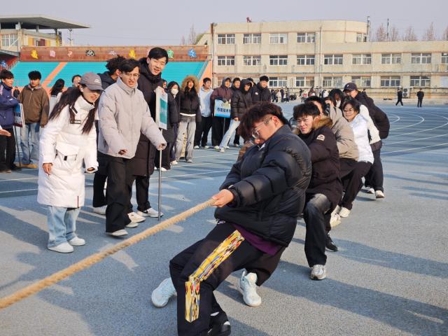 为提升学生身体素质,增强学生团队协作意识,12月11日,色播 于东校区田径场参加色播 第十一届“聚力杯”拔河比赛,2025级部分学生参加。