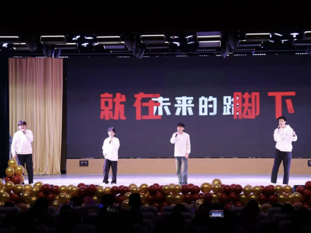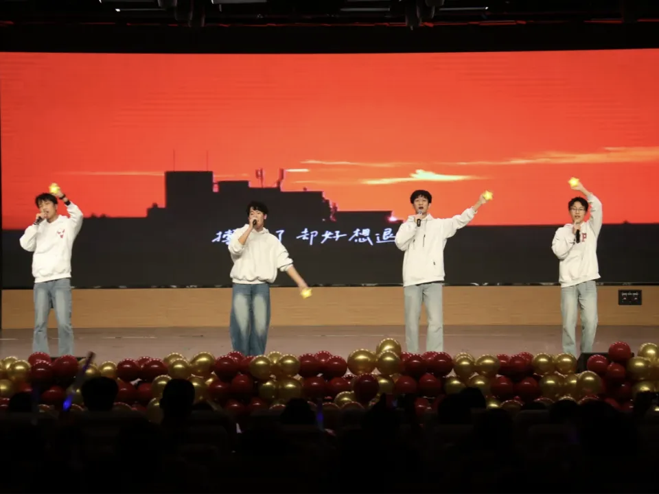 破浪扬帆,勇济沧海;潮头挺立,尽显雄风。小品《放下手机,拥抱生活》以贴近日常的诙谐演绎,生动揭示过度沉迷手机对现实生活的影响,呼吁同学们珍惜身边的亲情与友情,主动拥抱真实生活的温暖;由两院学生组织成员呈现的舞蹈《“部部”精彩,舞动青春》,以整齐有力的动作与昂扬向上的姿态,展现两院学子协作共进的精神风貌;风采展示《榜样青年说》邀请优秀学子登台分享成长感悟,树立青春标杆,引领朋辈砥砺前行;歌曲《我相信》旋律激昂,唱出两院学子的自信、坚毅与对未来的无限憧憬;最终,晚会在全体演职人员合唱《相亲相爱》的温暖歌声中圆满落幕,歌声承载着两院师生深厚的情谊,也寄托着对新一年的美好期盼与共同祝愿。