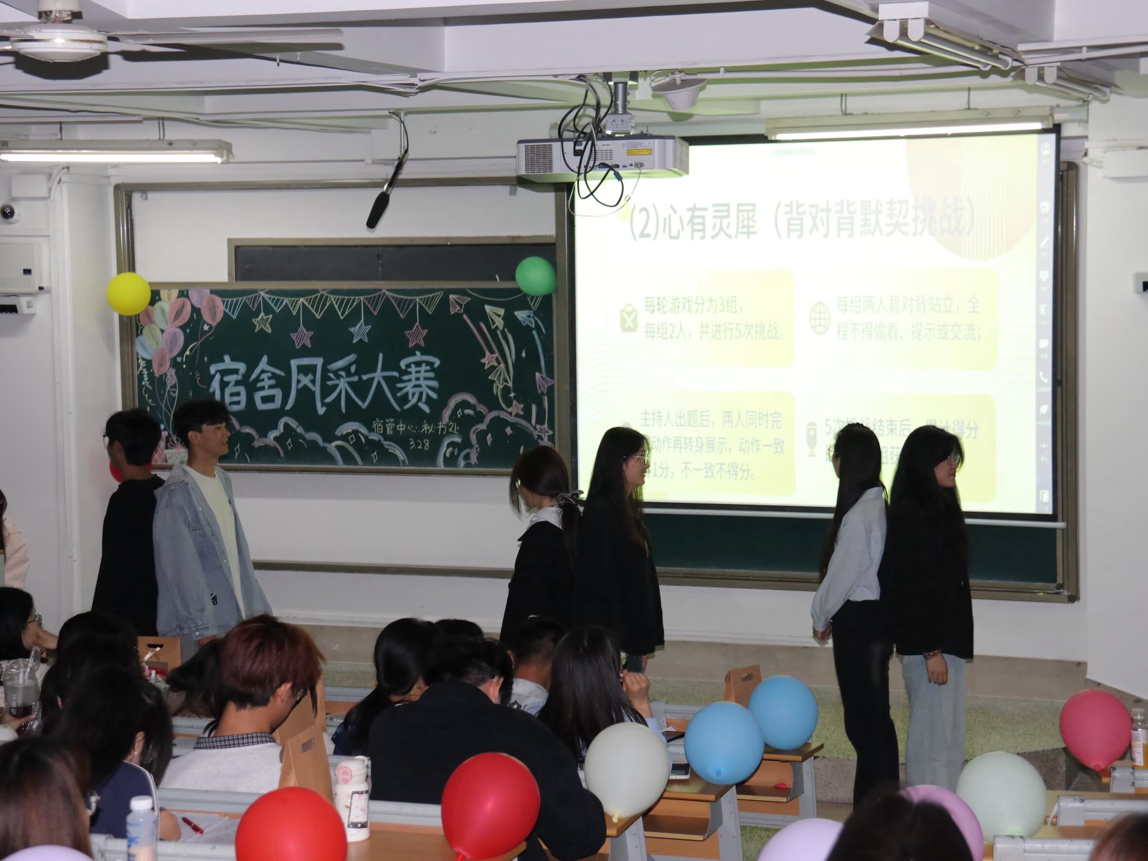 为丰富学生课余文化生活,搭建宿舍交流平台,增强宿舍集体凝聚力,3月28日,数学与系统科学学院在11号教学楼A210教室举办宿舍风采大赛,2024级、2025级部分学生参加。
