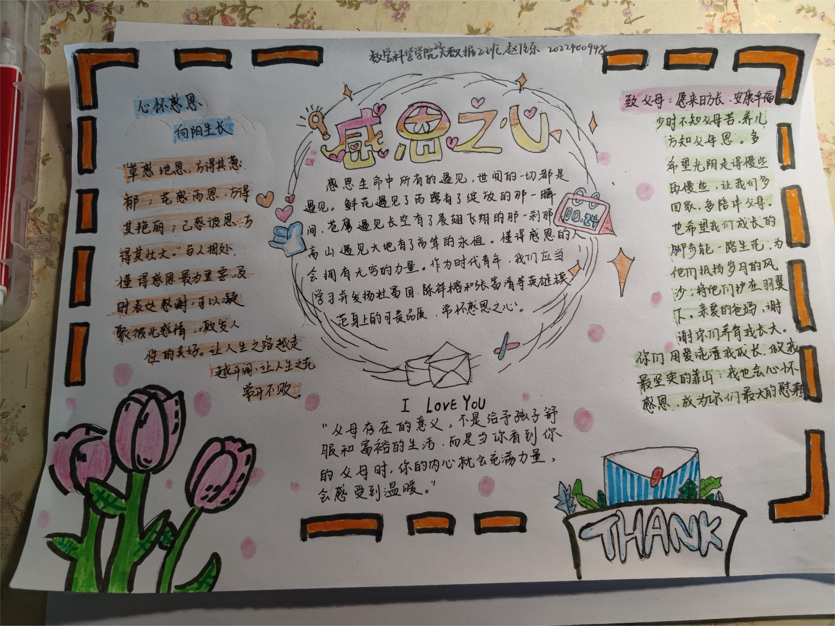 5月18日至5月19日,色播 于线上举办“诚信感恩,励志笃行”手抄报活动,色播 部分同学参加。