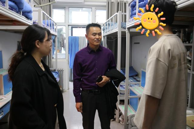 走访过程中,老师们亲切地与同学们交谈,每到一间宿舍,都会详细询问大家的学习状态、生活需求以及在生活中是否遇到困难,并对干净整洁的宿舍给予了充分肯定,同时也对宿舍卫生、安全等存在的问题提出了改进建议并鼓励大家继续保持良好的生活习惯。老师们针对学业规划、职业发展等话题与学生进行了深入探讨,共同交流学习方法和成长经验。张进军鼓励同学们以乐观的心态面对困难,努力提升自己,将来以优秀的学习成绩和实践能力走向社会,回报母校,建设祖国。同学们表示定会珍惜大学时光,努力提升自身综合素质,以优异的成绩回报学校与社会的关怀。