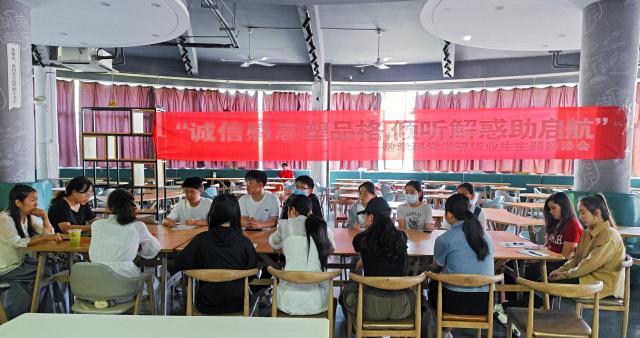 为进一步强化毕业生诚信与感恩意识,筑牢信用立身的价值根基,同时推动贷款毕业生还款工作高效有序开展,5月26日,我院在湖苑餐厅二楼组织开展了“诚信感恩塑品格,倾听解惑助启航”为主题的贷款毕业生主题座谈会暨毕业生餐厅沙龙活动,本次活动由辅导员范海燕、张琦主持,2025届贷款毕业生参加。