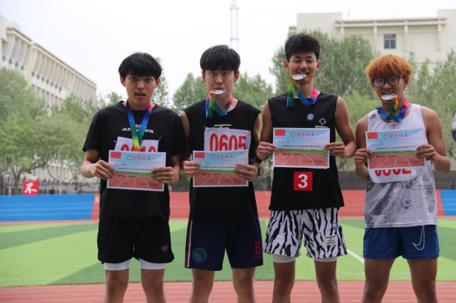 张如意、白广可、李昊、姚鹏飞在学生男子甲组4×400米接力决赛中获第1名。