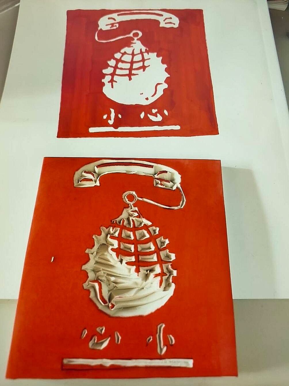 在“穿梭古今,筑牢反诈防线”舞台剧比赛里,2024级5班的周瑞琪、郭莎、郭晓悦、刘欣萱、崔思媛、李燕六位同学组成的团队表现亮眼。他们精心编排的剧目生动还原诈骗手段,以“不轻信、不透露、不转账”为核心传递反诈要点,将社区居民互助共治的温暖与警民携手防诈的实效精彩呈现,最终荣获三等奖;在“全民反诈,守护平安”文创大赛中,2024级4班刁新颖的反诈宣传橡皮章作品构思巧妙,她把电话线与炸弹相连,电话线象征被诈骗分子利用的通讯工具,炸弹寓意诈骗危害,下方“小心”二字直白警示,这件作品如同反诈小卫士,提醒大家警惕诈骗风险。
