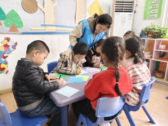 活动伊始,志愿者带领小朋友一起唱《铃儿响叮当》歌曲,以简单易懂的方式介绍圣诞节的由来、讲述圣诞老人的故事,让孩子们对圣诞节有初步的了解。手工教学环节,志愿者耐心地指导小朋友们折纸圣诞树、制作圣诞贺卡,帮助小朋友们解决纸张折不齐、胶水使用不当等问题,在他们的帮助下,小朋友们都成功折出自己的圣诞树,用绘画工具绘制出自己心中的圣诞愿景。最后的神秘盒子游戏将活动氛围推向高潮,志愿者准备一个神秘盒子,邀请小朋友们伸手去摸并猜测摸到的物品,猜对的小朋友会得到糖果、小贴纸等奖品,大家积极参与,教室里充满欢声笑语,现场洋溢着欢乐、温馨的气氛。