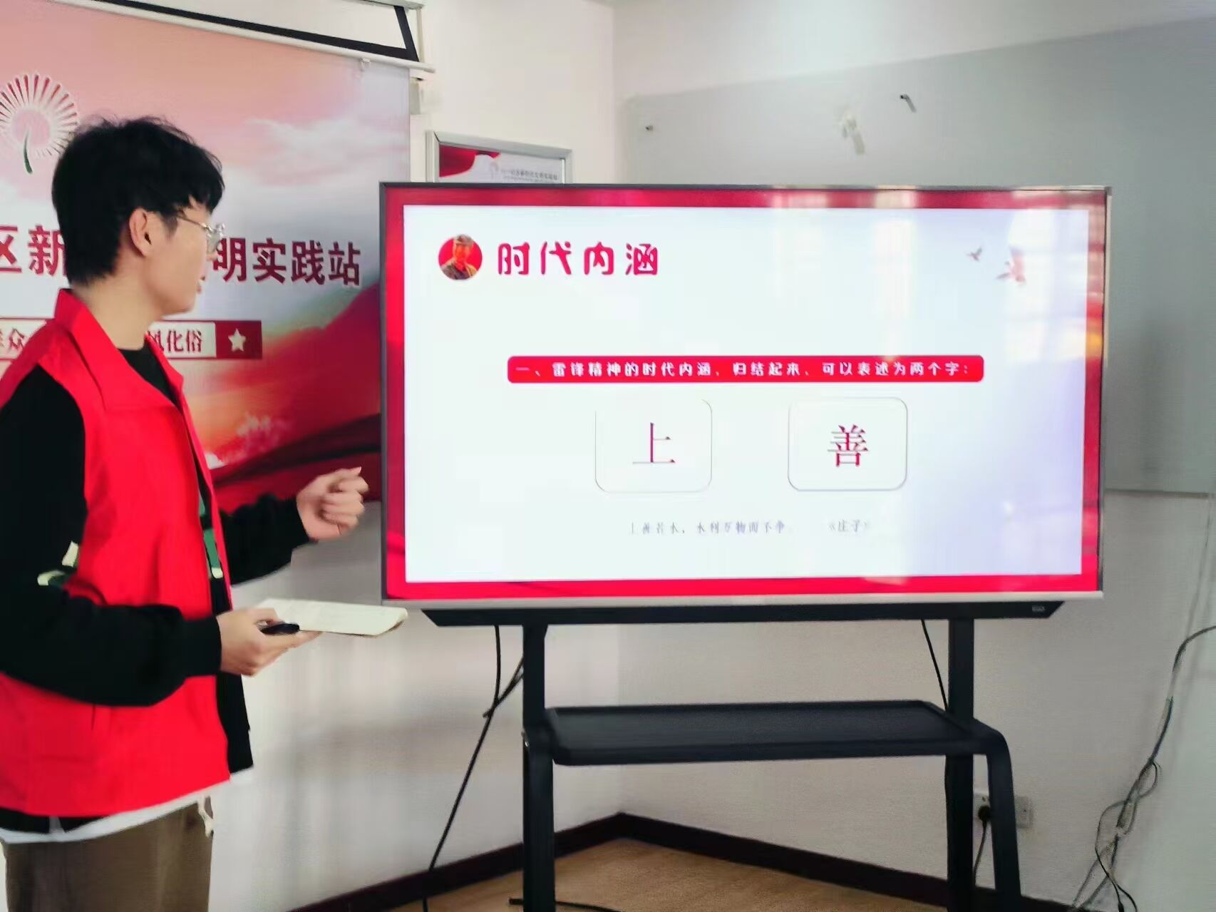 志愿者通过精心准备的图文展板和专题短片,带领居民重温了“螺丝钉精神”的深刻内涵,展板上的一段段文字、短片中的一个个场景,生动地呈现出雷锋同志无私奉献的一生,让居民们深受触动,感受到雷锋精神的伟大与崇高。交流互动环节,志愿者与社区青年围绕“青年如何践行雷锋精神”展开讨论,现场气氛活跃。新时代雷锋精神解读环节,志愿者结合社区治理、志愿服务等实际案例,剖析了雷锋精神在新时代的价值,提出“平凡中坚守初心”“微光汇聚大爱”正是新时代雷锋精神的生动体现,鼓励大家在日常生活中要践行雷锋精神,为社区和谐发展贡献自己的力量。