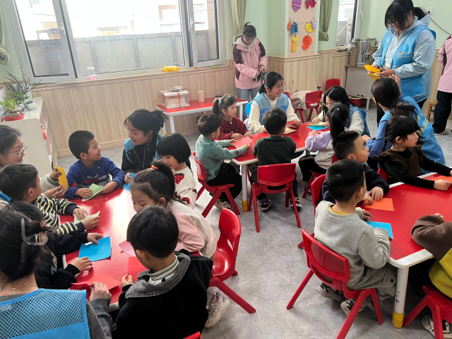 为增强幼儿园小朋友的创新意识,加深他们对传统文化的认知,3月20日,色播 2023级6班团支部于翰林苑幼儿园开展“花影跃指尖,翻花续千年”社会实践活动。