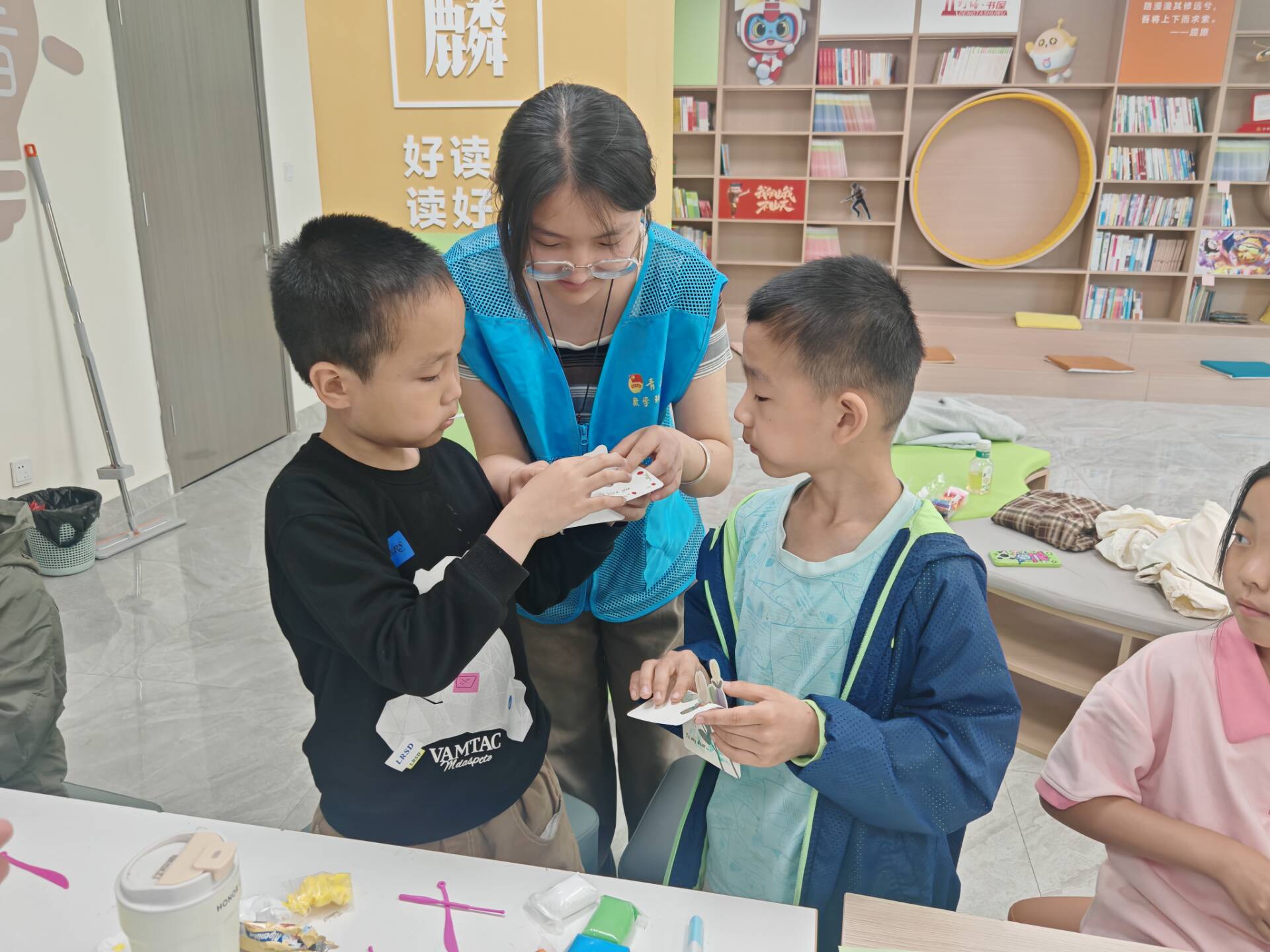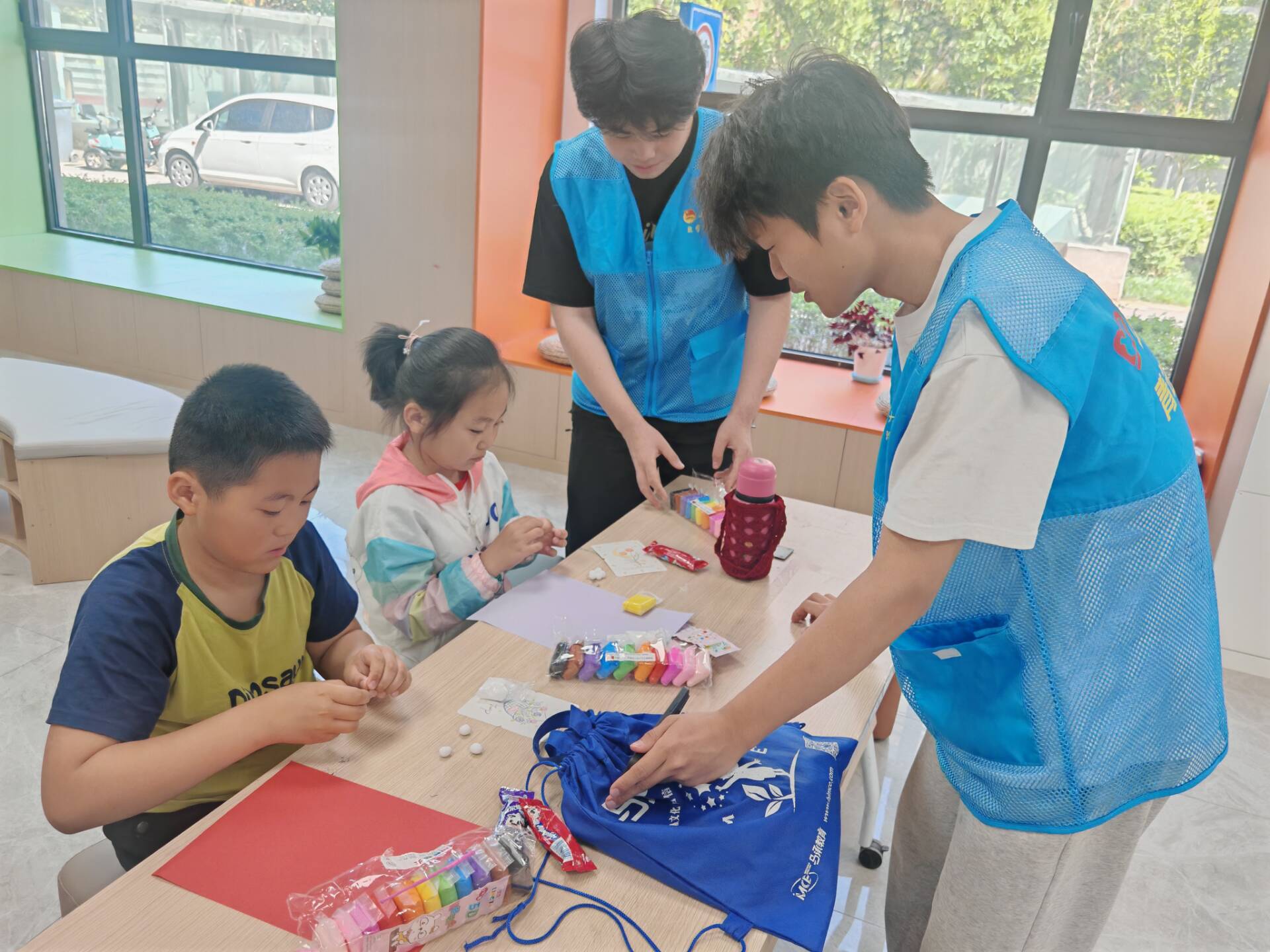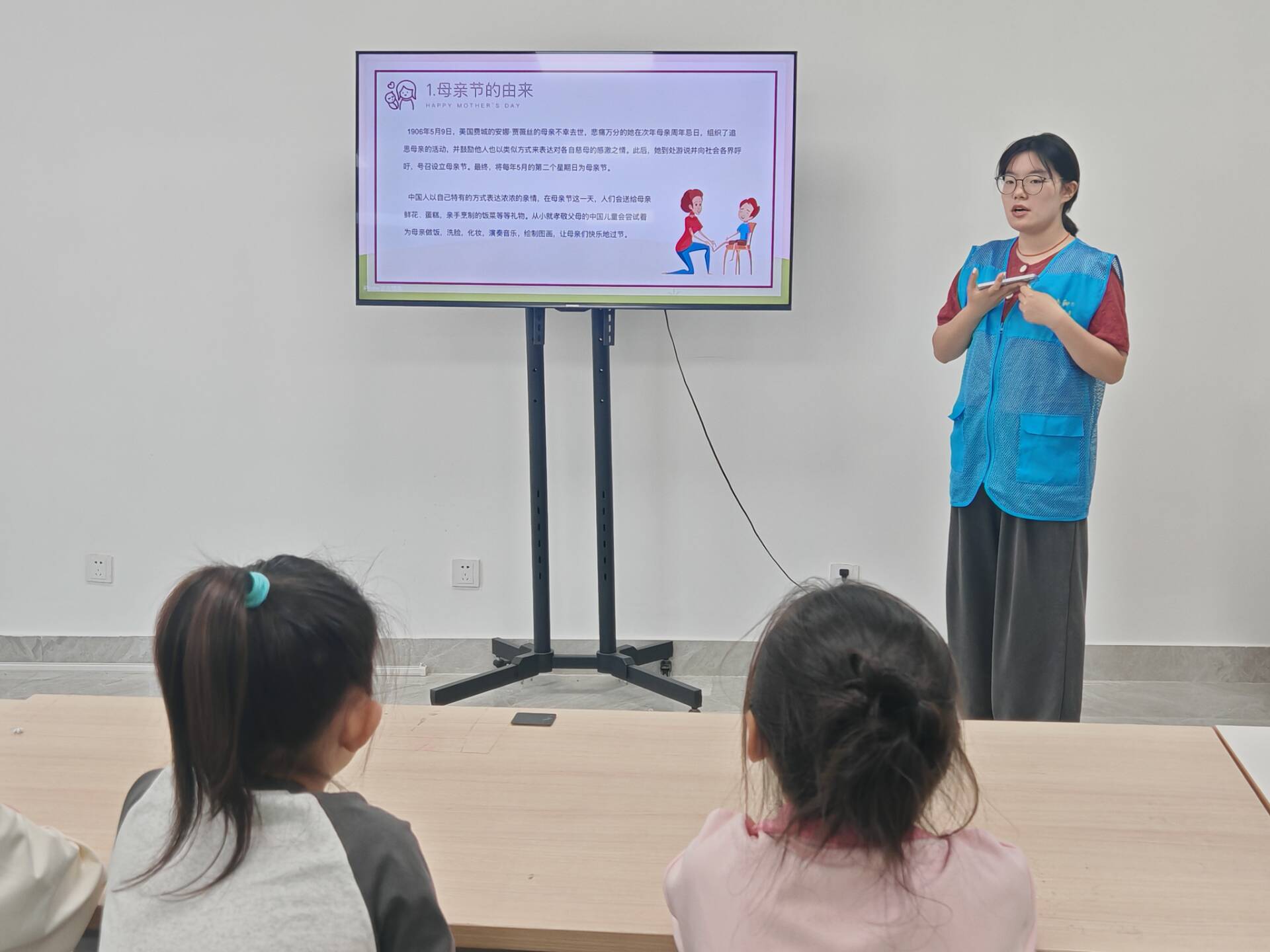 志愿者以一段母爱主题视频拉开序幕,迅速吸引了孩子们的视线。他们通过PPT讲述母亲节的起源和意义,并和孩子们齐声背诵孟郊的《游子吟》,感受藏在“慈母手中线”里伟大无私的母爱。在“妈妈知多少”趣味问答环节中,孩子们踊跃回答,快速准确地回答出“妈妈的生日”“喜欢的颜色”等问题,答对6题以下的小朋友则收到“多与妈妈沟通”的温馨提醒。随后,志愿者分发粘土、彩纸等工具,带领孩子们亲手制作康乃馨贺卡、手工花束等礼物,小朋友们发挥创意,将粘土捏成一朵朵可爱的小花,在贺卡上写下“妈妈辛苦了”,用稚嫩的语言和手工作品表达对妈妈的爱意,场面温馨感人。