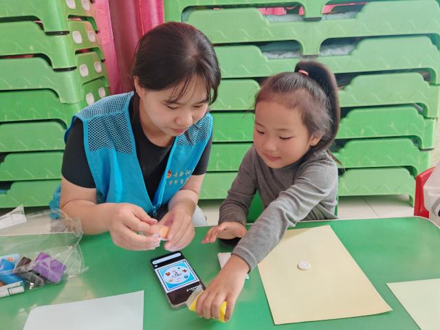 活动伊始,志愿者通过播放经典动画《小兵张嘎》,以生动直观的画面将少年英雄的勇敢与担当呈现在小朋友们面前,小朋友们认真观看,稚嫩的脸庞上满是专注,眼中充满了对少年英雄的崇敬与向往。随后,志愿者以“你心目中的英雄”为主题开启互动分享,鼓励小朋友们讲述自己了解的红色故事,小朋友们踊跃举手发言,一个个故事接连涌现,现场氛围严肃而热烈。接着,在志愿者帮助下,小朋友们利用彩纸、画笔和黏土进行手工创作,用一幅幅精美的作品表达了对英雄的敬意。活动最后,全体小朋友在志愿者的带领下高举自己的作品,齐声喊出“传承英雄志,勇担时代责”的口号,稚嫩的童声汇聚成温暖而坚定的力量。