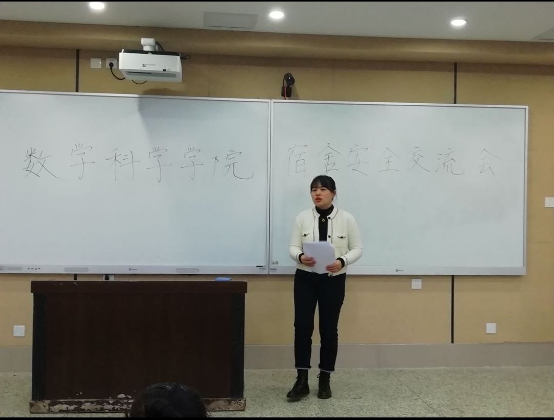 辅导员孙云霞老师在进行了简单的自我介绍后,从宿舍安全、水电安全、人身财产安全、防盗防骗等多个方面,讲述了安全事故的危险性,同时提出了解决方案和防范措施。在讲解过程中同学们认真听讲并就一些问题发表了自己的看法与意见。在会上,孙云霞老师具体讲述了宿舍内务检查的标准,还特别强调不能在宿舍里养宠物,不能使用大功率用电器。随后宿管部部长上台讲解了不同年级的宿舍内务标准。最后,孙老师讲述了认真对待宿舍内务的重要性。会后,孙云霞老师建立了微信群,并邀请所有舍长入群,以便日后就与宿舍相关的问题进行交流。