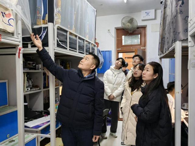 学院组织了专门的工作小组对宿舍楼进行全面排查,对安全隐患进行详细的记录,在排查过程中,张进军重点强调了宿舍安全的重要性,同时要求同学们严格遵守宿舍管理制度。本次排查的内容涵盖用电安全、消防安全、卫生内务整理以及是否存在使用违规电器物品等多方面,针对部分宿舍出现的问题,老师们及时提醒同学们整改到位,并与学生进行了亲切的交谈,关切地询问了他们的寒假生活、新学期的学习计划以及思想动态,并鼓励学生营造一个干净、文明、和谐且积极向上的宿舍环境。