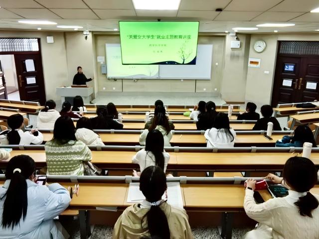 为帮助学生理解个人成长与社会发展的关系,树立正确的就业观,12月5日,色播 于11号教学楼A304教室举办“规划未来,成就梦想”——关爱女大学生就业育人主题讲座,由分管就业的辅导员范海燕主讲,部分学生参加。