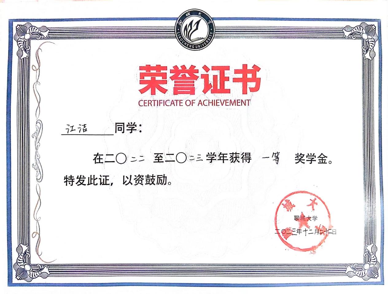 2022.12 色播 一等奖学金