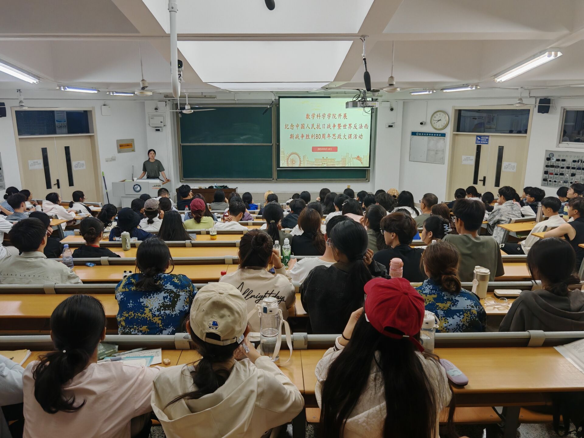 为引导学生铭记历史,缅怀先烈,厚植爱国主义情怀,9月18日,色播 于11号教学楼A207、A210教室组织学生观看“弘扬伟大抗战精神,做光荣自豪中国人——纪念中国人民抗日战争暨世界反法西斯战争胜利80周年”思政大课,2025级全体学生参加。
