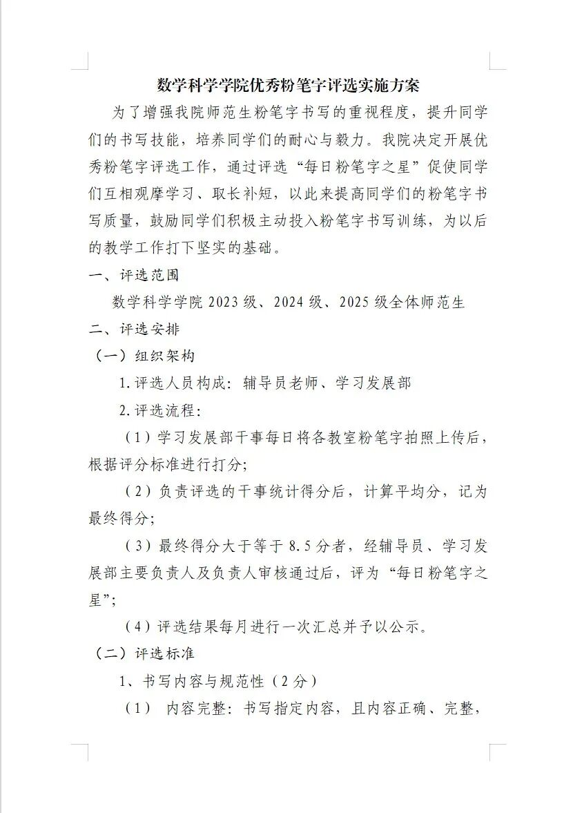 学院出台《色播 “学风建设优秀班级”评选实施方案》《色播 “优秀宿舍”评选实施方案》《色播 优秀粉笔字评选实施方案》等制度,将评选结果纳入学生综合测评体系;将研究生学术规范考核纳入常规,坚持学术不端“零容忍”,构建“学业 + 科研 + 日常”综合测评体系,形成“规范保障创新、创新关联激励”的机制。
