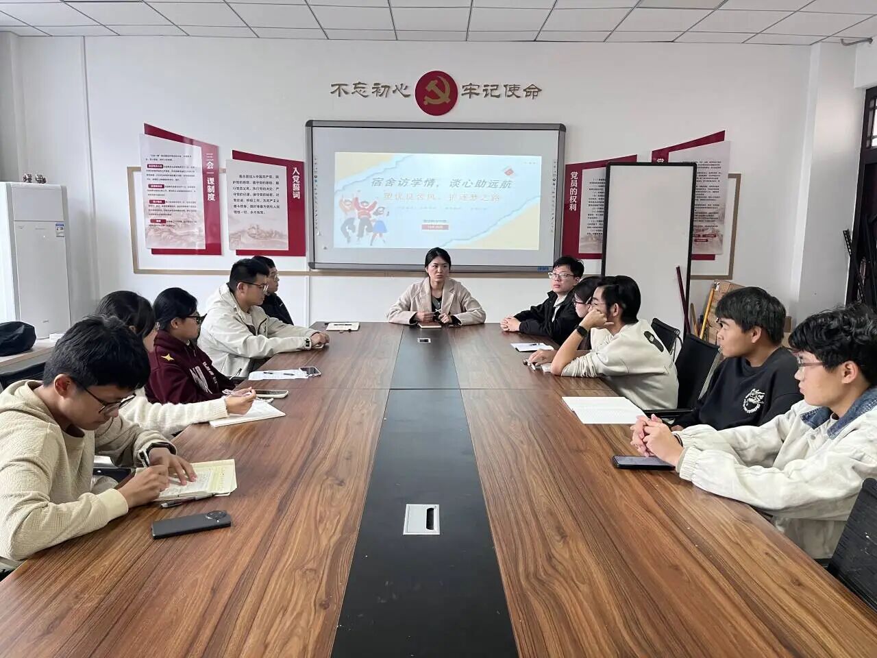 构建“领导班子带头、师生协同”的学风建设领导小组,领导小组成员常态化下沉课堂,检查学生按时到课、前排就坐、课堂互动等情况。同时,定期巡查卧谈熬夜、沉迷游戏等行为,织密学风建设“防护网”,筑牢优良学风根基。