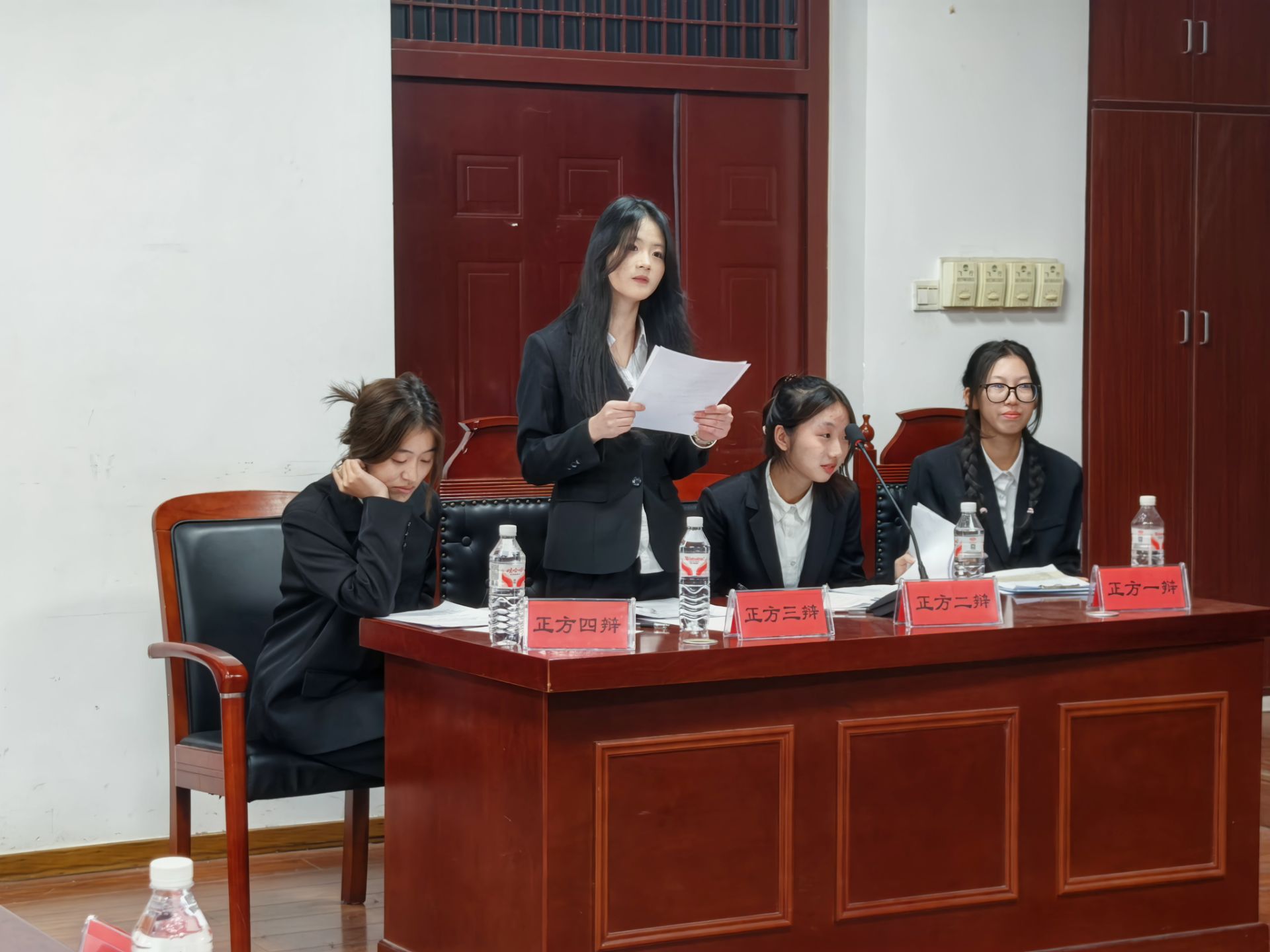 本场辩论围绕“对‘加害者’事出有因的讨论有利/不利于社会公正”这一富有现实思辨价值的辩题展开。辩论过程中,双方辩手立足各自立场,逻辑清晰、言辞犀利。正方从社会公正的整体视角出发,强调理解动因的重要性;反方则着眼于社会平等与对受害者的基本权利保障,指出过度讨论“事出有因”可能会弱化对受害者的保护。自由辩论环节,我院辩论队敏锐捕捉对方逻辑漏洞,层层推进、激烈交锋,展现出色的临场应变能力与语言组织能力。比赛结束后,三位评委对比赛进行专业细致的点评,在肯定双方在辩论过程中的出色表现的同时,也指出论证中的不足并给出改进建议。