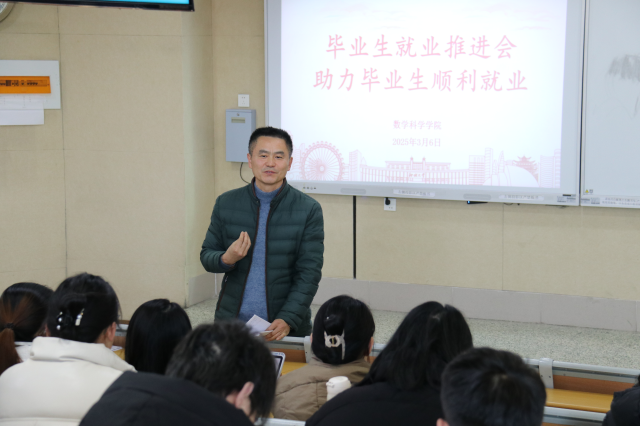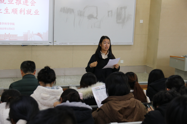 会议围绕当前就业形势、政策解读、岗位推介及就业观念引导展开。会议伊始,范海燕对学院2024届毕业生就业工作进行了系统性的回顾与总结,对2025届毕业生就业形式进行了分析,明确指出当下就业形式的严峻性和挑战性,引导学生了解多元化的就业形式,如应征入伍、西部计划、出国留学、自主创业等,并重点解读了国家及地方促就业政策和就业信息的获取渠道,最后,范老师建议毕业生要主动调整预期,树立“先就业、再择业”的务实观念,并鼓励毕业生通过找工作的经历积累经验,补足短板,提升自身能力。学院也将持续开展“一对一”就业咨询、简历优化指导及模拟面试等服务,助力毕业生顺利就业。