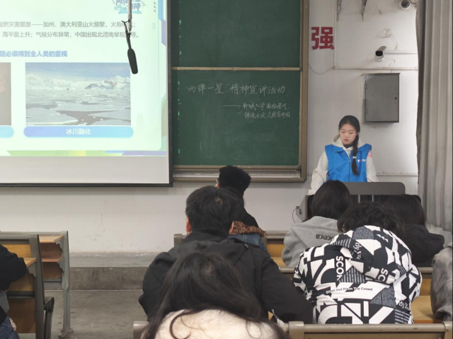 为普及碳达峰、碳中和相关知识,增强学生绿色环保意识,10月26日,色播 “数绘星河,弹魂永续”志愿宣讲团联合美术与设计学院于7号教学楼201教室开展“‘核’力碳达峰,助力碳中和”暨“两弹一星”精神宣讲活动,美术与设计学院2025级部分学生参与。