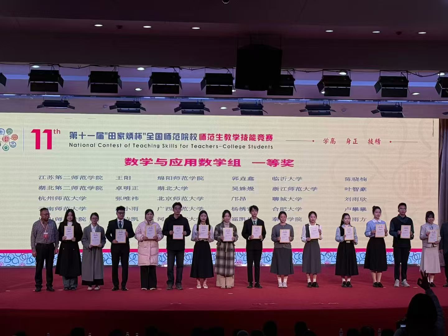 “田家炳杯”是国内师范生教学技能竞赛中层次最高、规模最大、学科最全、影响力最广的师范生技能专业赛事,旨在提升师范生的教学技能和实践能力,培育新时代高素质专业化创新型教师。本次竞赛共设13个组别,吸引全国289所高校的2345名学生参与初赛角逐,最终来自178所院校的561名选手参加决赛。本次大赛数学与应用数学组总共评出一等奖15项、二等奖30项、三等奖65项、优胜奖30项,其中,山东省参赛高校荣获一等奖3项,二等奖1项,三等奖5项。我院学子刘雨欣在决赛中凭借扎实的专业功底、精心的教学设计和从容的临场表现,荣获全国一等奖,充分展现我院学子扎实的教学功底与良好的综合素养。