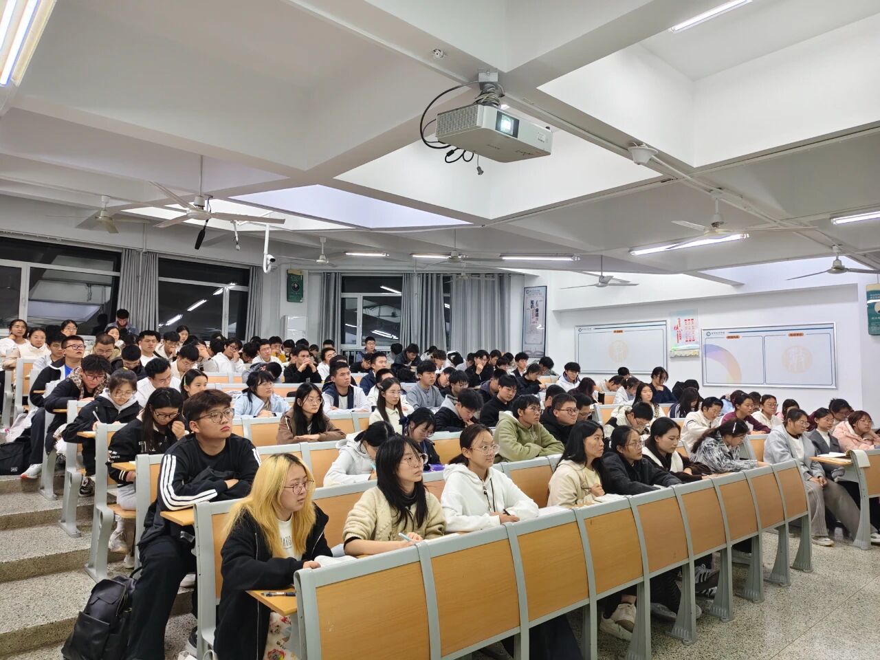 活动伊始,张进军代表学院对新生学业和生活适应情况表示真情关切,对大家近期积极的学习状态和饱满的精神面貌给予充分肯定。随后,他向同学们提出“入学三问”,引导大家从“认识自己、认识专业、认识社会”三个维度进行思考,希望同学们明确目标,做好规划,为未来四年的大学生活奠定坚实基础。最后,张进军对同学们提出三点具体要求:一是要正确认识自己,培养主动学习的意识,养成良好的行为习惯;二是要正确认识专业,既要精准把握本专业的核心知识与逻辑框架,也要主动涉猎相关领域的前沿动态,构建系统化的专业知识体系;三是要正确认识社会,积极响应时代召唤,发奋努力,勇毅前行,为社会发展贡献青春力量。活动过程中,同学们认真聆听,详细记录重点,并表示将会以此次活动为契机,严格要求自己,营造班级的优良学风。